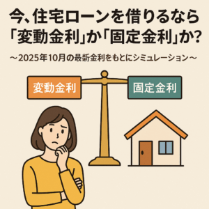 2025年10月時点の最新金利をもとに、変動金利と固定金利(フラット35)を徹底比較。返済額シミュレーションや金利上昇リスクの検証を通じて、それぞれが有利となるケースをわかりやすく整理。住宅ローン選びに役立つ実践的な情報をお届けします。
